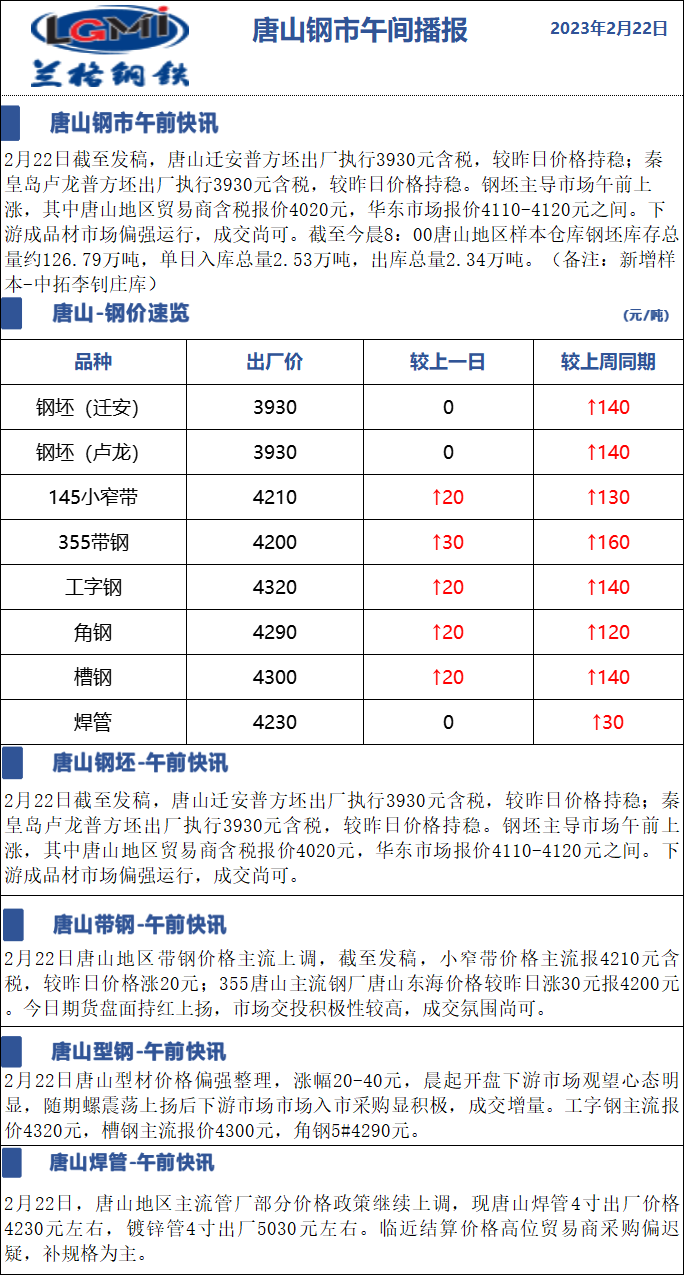 发表日期:2023/2/22 11:42:20 兰格钢铁