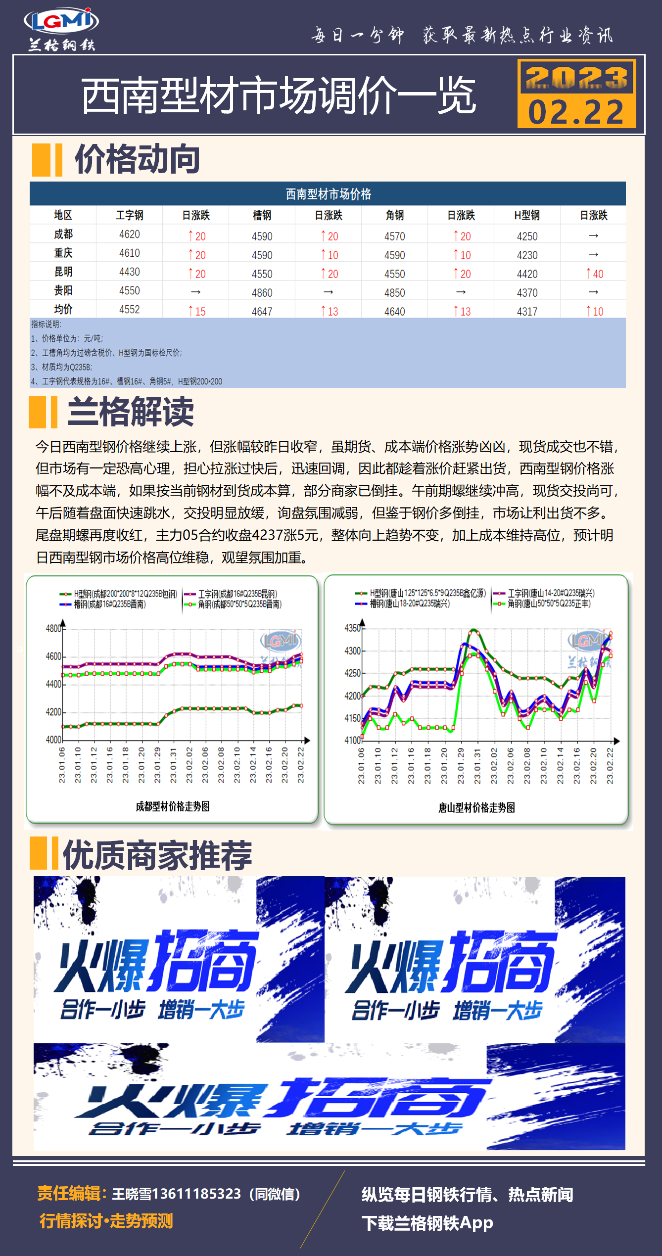 - 2月21日贵阳长乐钢铁建筑钢材出厂价格上调20元2023/2/22