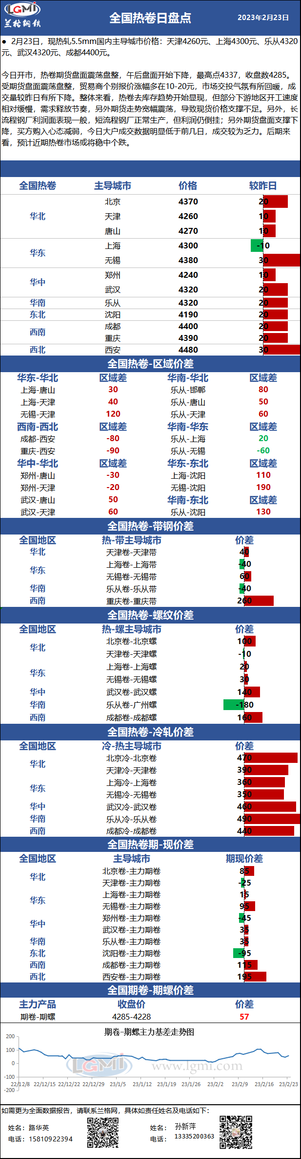 - 兰格热卷日盘点:热卷现货价格继续上调 市场交投氛围有所回暖2023/2/23