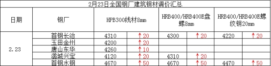 今日开市,市场价格小幅上涨。据了解,北京今日市场价上涨,螺纹主流价格在4200元,10家大户出货量合计7400吨。今日杭州建材主流资源市场价持稳,中天报4280元。据兰格钢铁网统计,2月23日杭州12家建材贸易商合计出货19000吨,较上个交易日增加700吨。今日广州市场主流价格上涨。目前一线资源主流韶湘粤4350-4370元,柳钢万钢4440-4450元(磅计),河钢西林4420-4430元(磅计)。综合上述分析,预计2月24日市场行情或震荡运行。