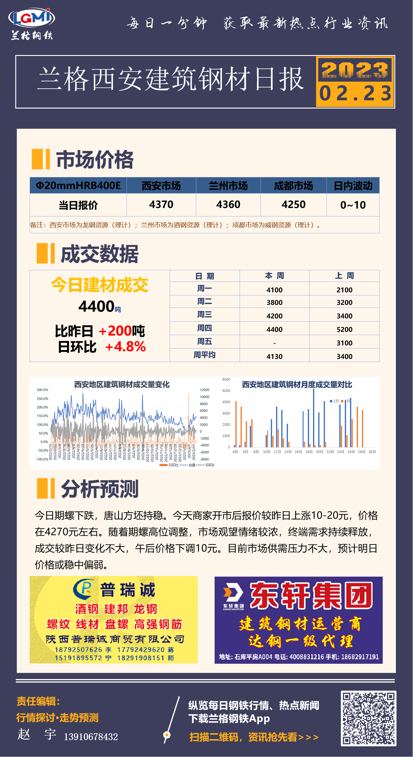 - 2月23日宁夏钢铁建筑钢材出厂价格平稳2023/2/23