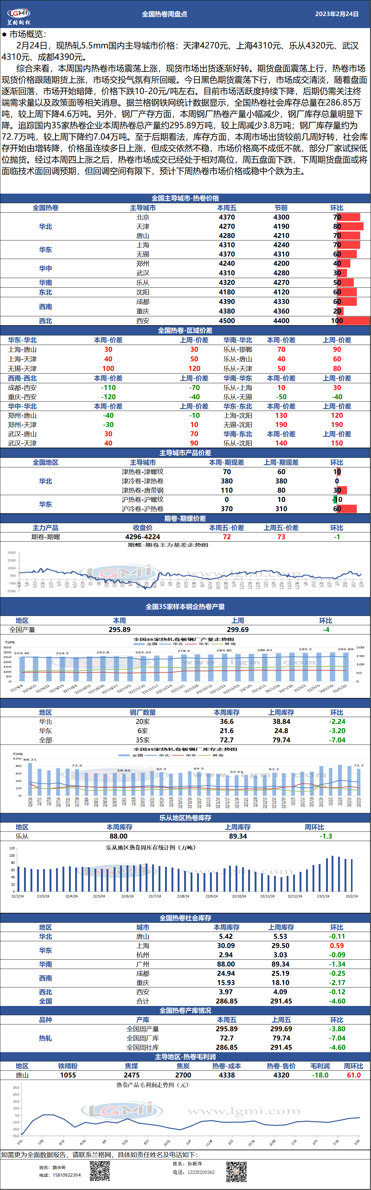 - 兰格热卷周盘点:热卷市场震荡走低 产量库存都有所下降2023/2/24