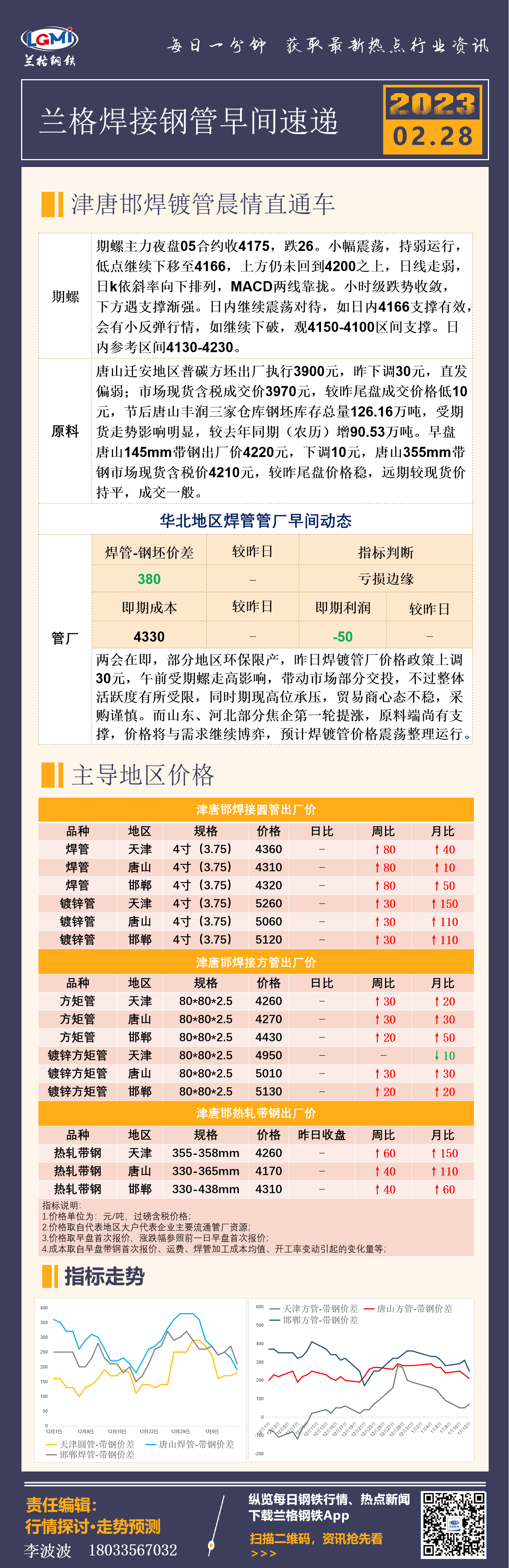 2月28日(9:20)兰格津唐邯焊接钢管早间速递
