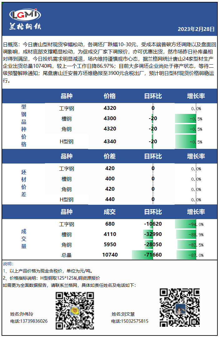 - 唐山型材日盘点:调坯企业窄幅调降 场内交投氛围显弱2023/2/28