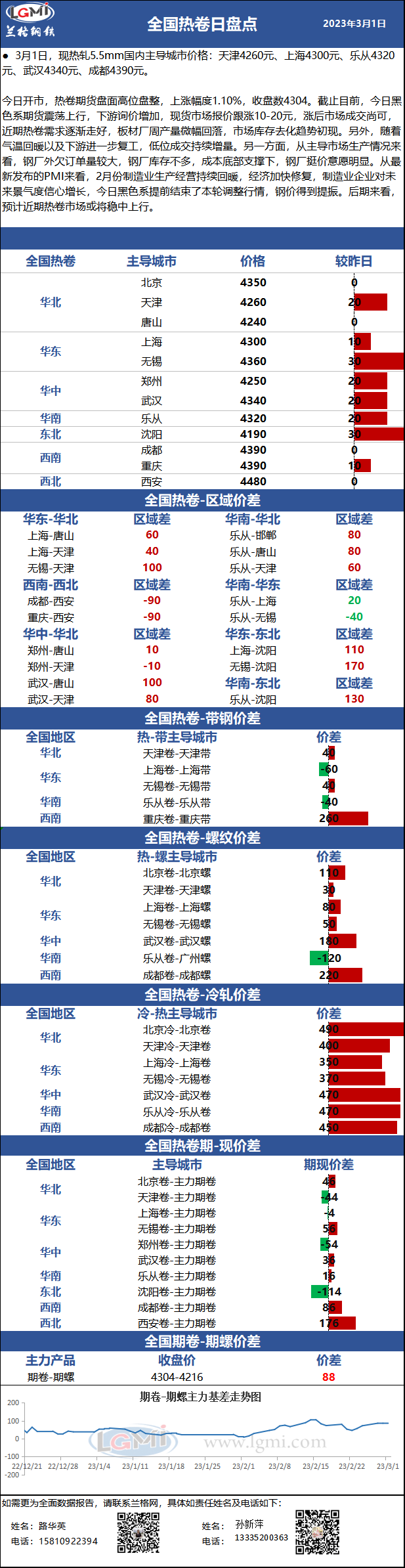 - 兰格热卷日盘点:热卷现货价格小幅上涨 市场库存去化趋势初现2023/3/1