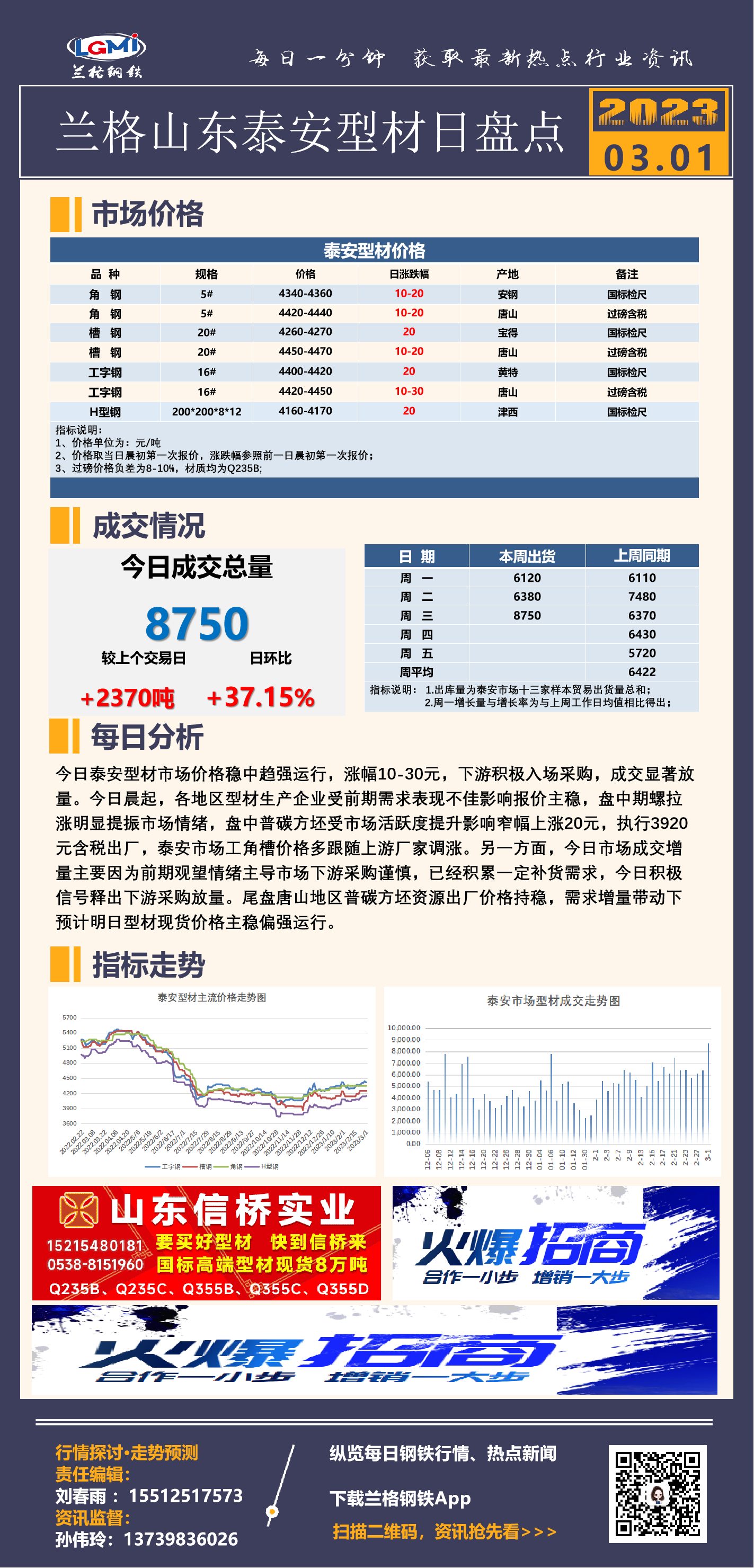 泰安型材日盘点:价格稳中趋强 成交显著增量