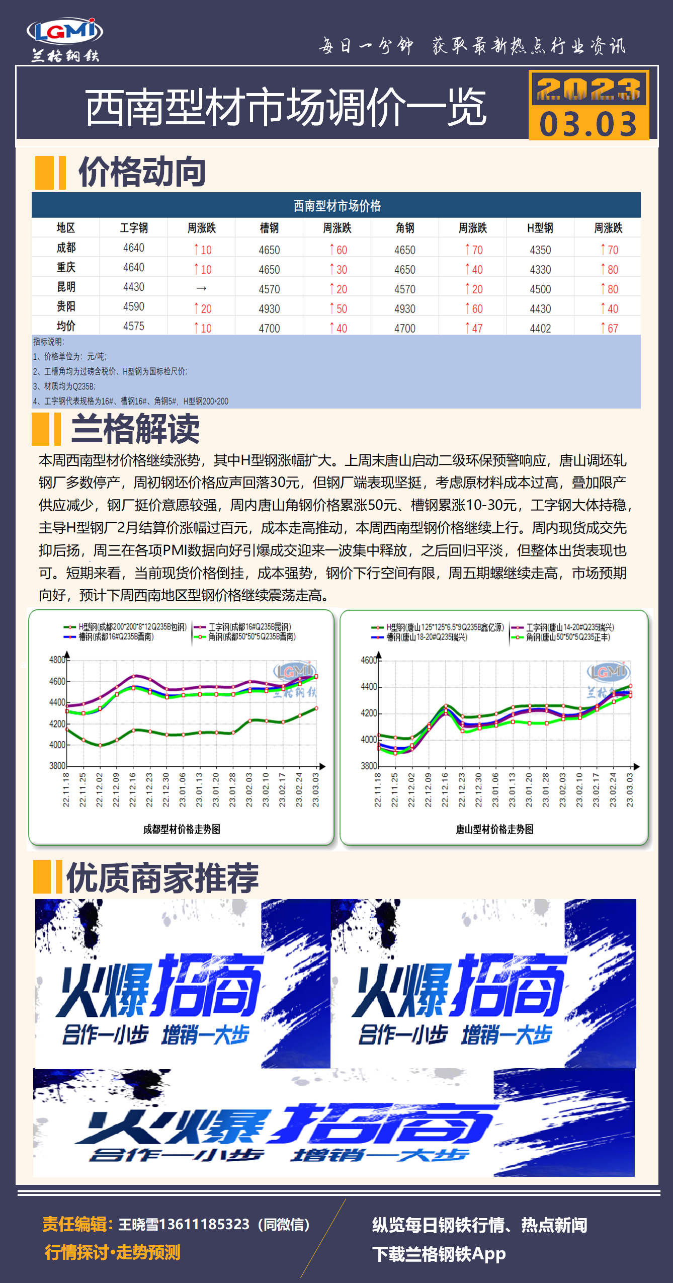 - 兰格钢铁:钢材社库“两连降” 建材上升板材下降2023/3/3