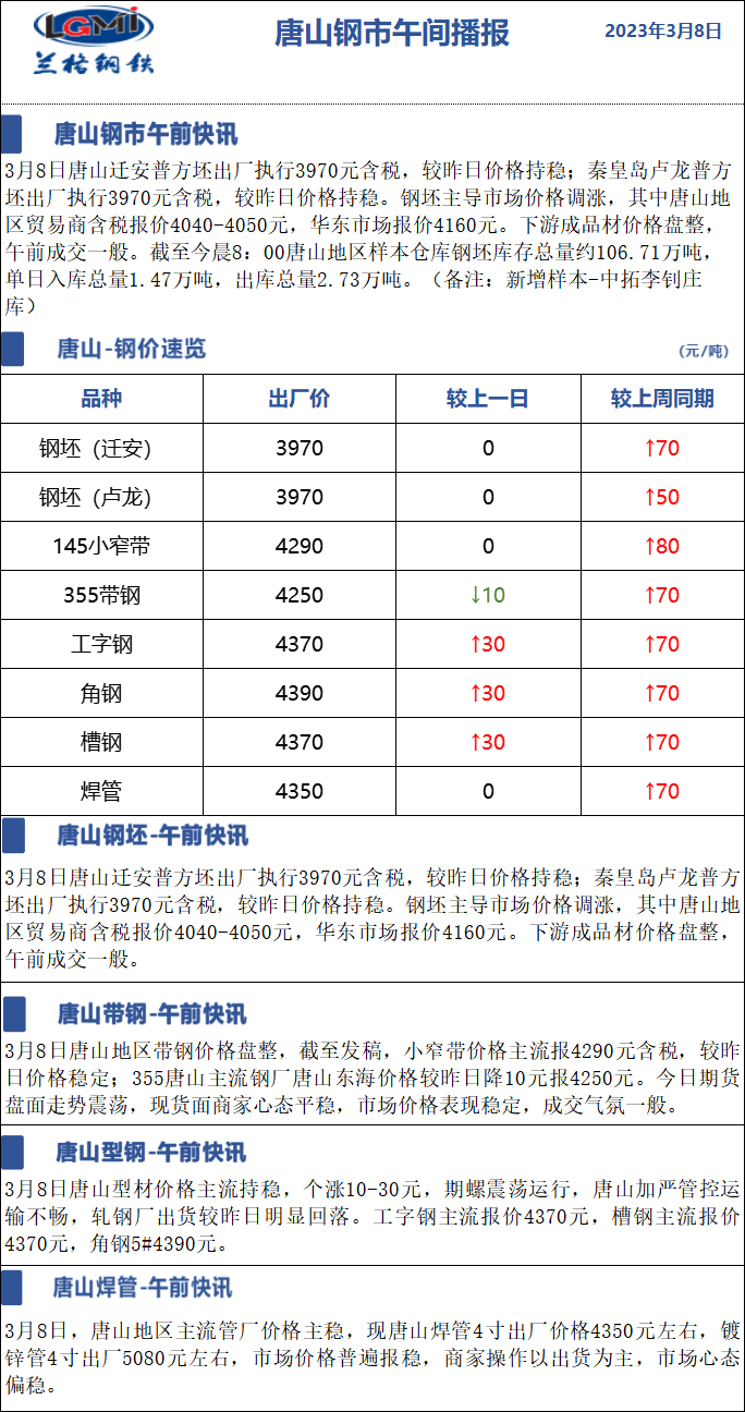 3月8日兰格唐山钢市午间播报