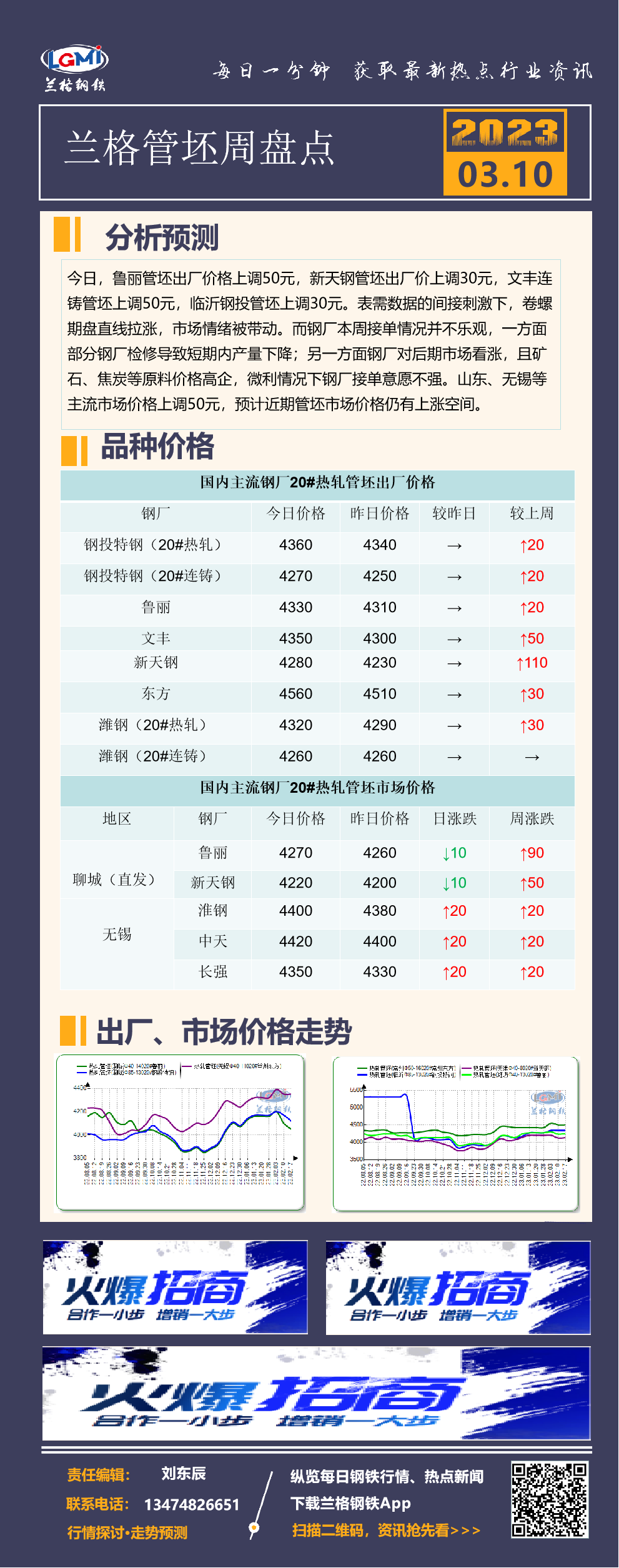 - 兰格钢铁:钢材社库“三连降” 建材转降板材快降2023/3/10