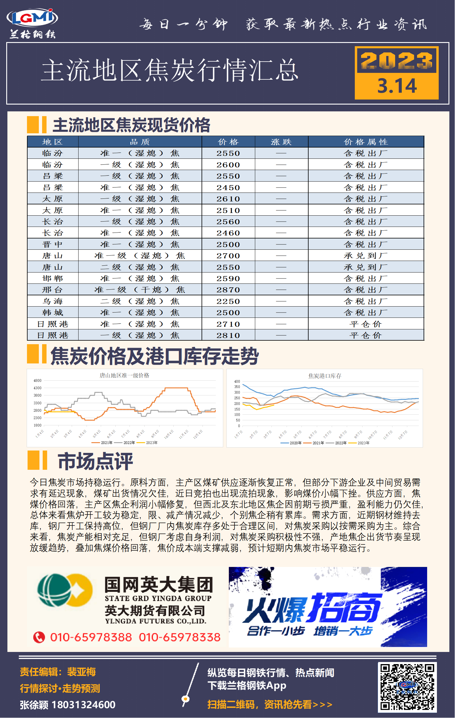 - 3月14日主流地区焦炭行情汇总2023/3/14