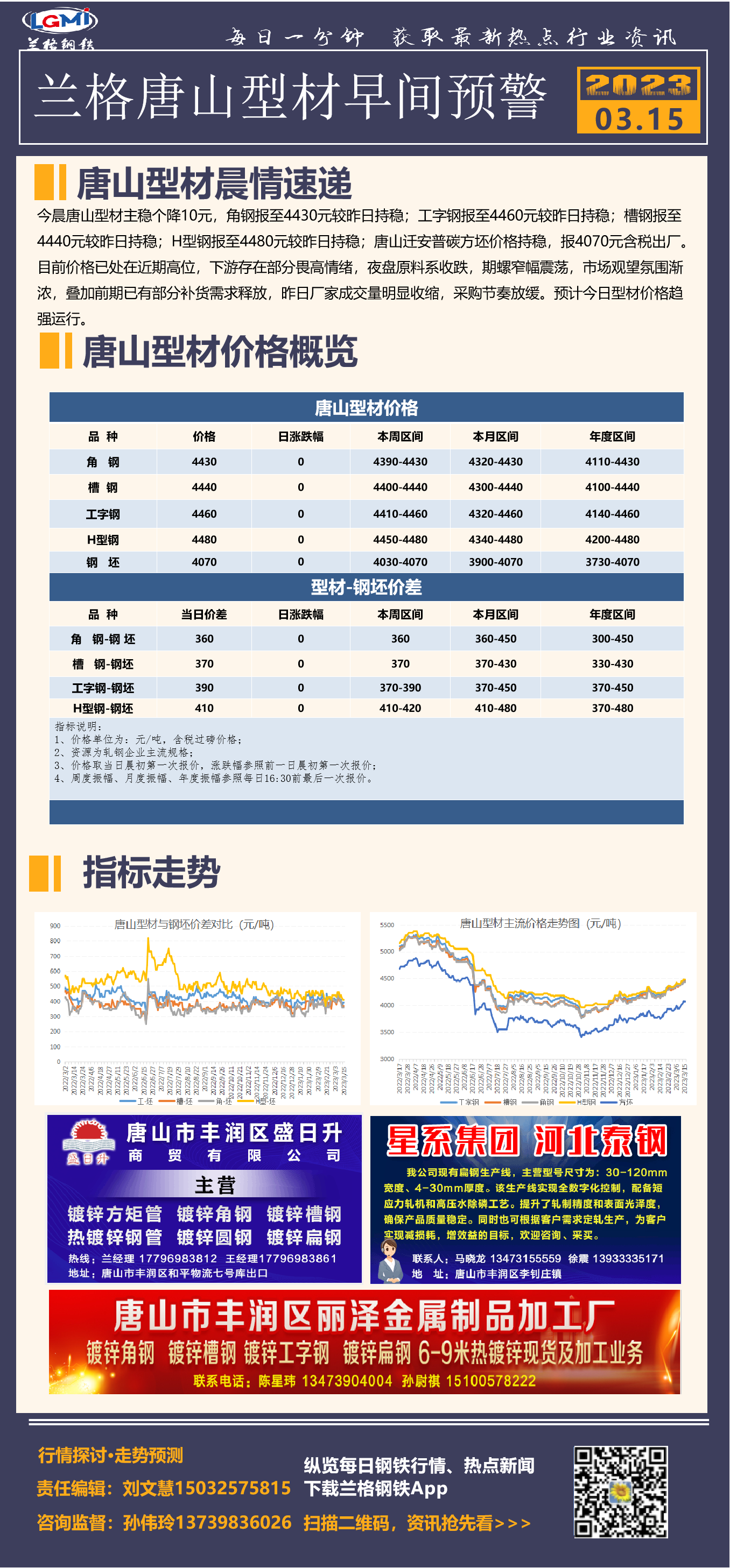 - 3月15日兰格唐山型材早间预警2023/3/15