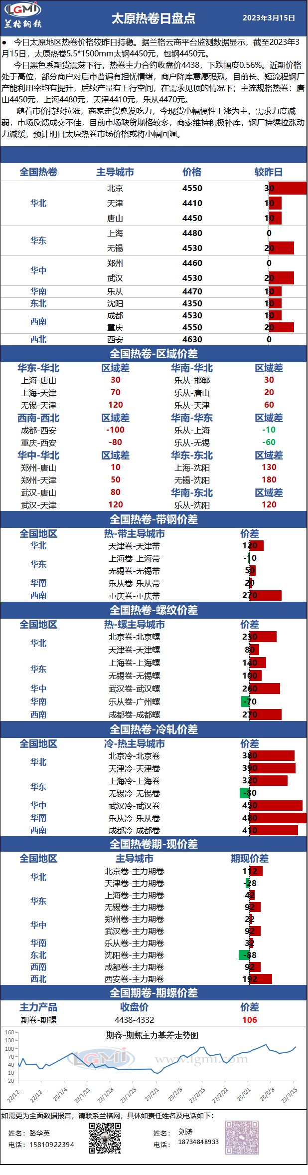 - 太原热卷价格持稳 明日或将小幅回调2023/3/15