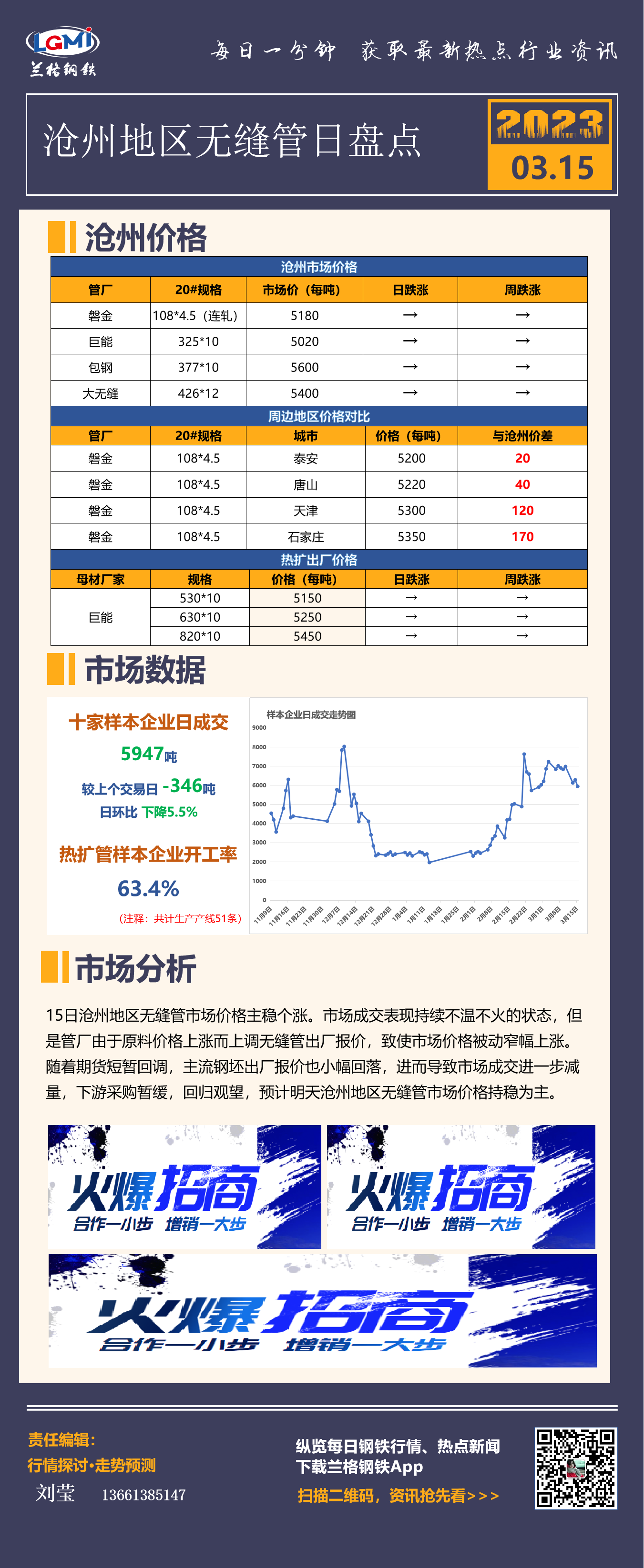 - 兰格视点:3月15日钢铁行业概览2023/3/15