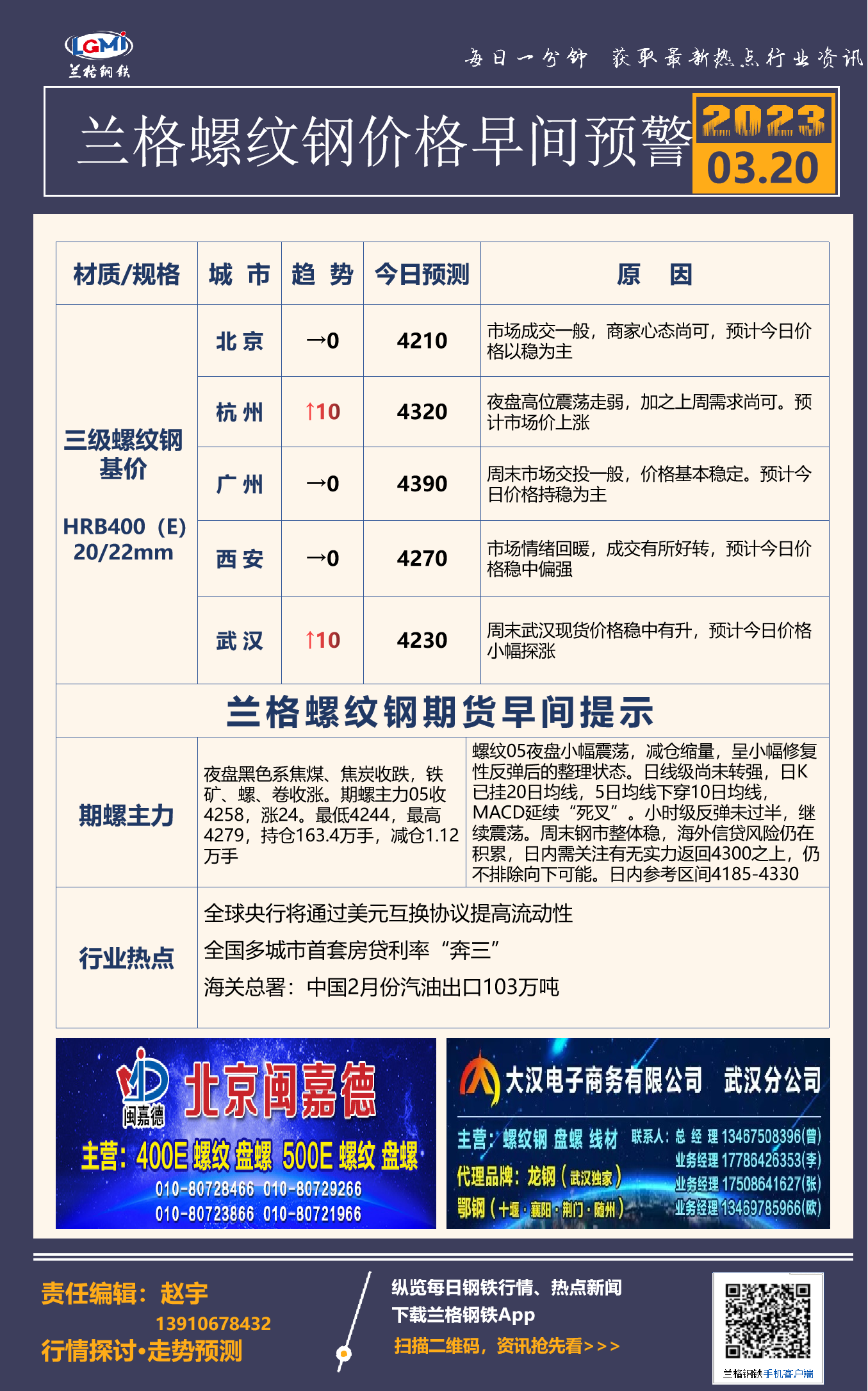 - 3月20日广西贵港钢铁钢部分价格上调20元2023/3/20