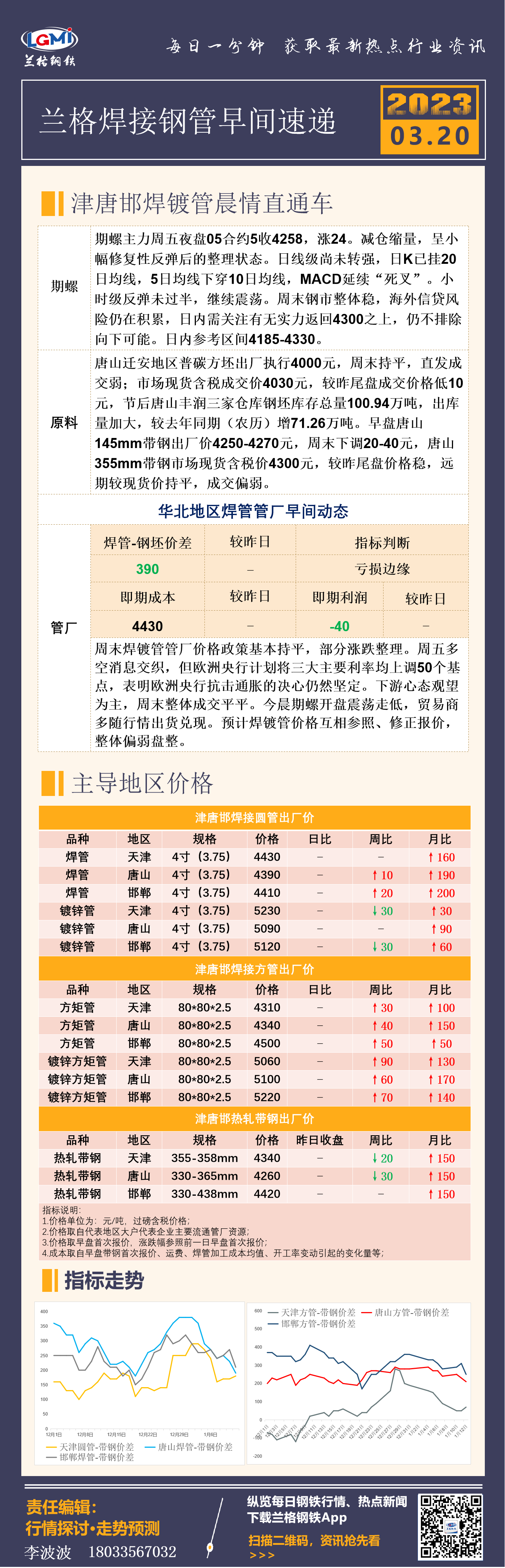 3月20日(9:20)兰格津唐邯焊接钢管早间速递
