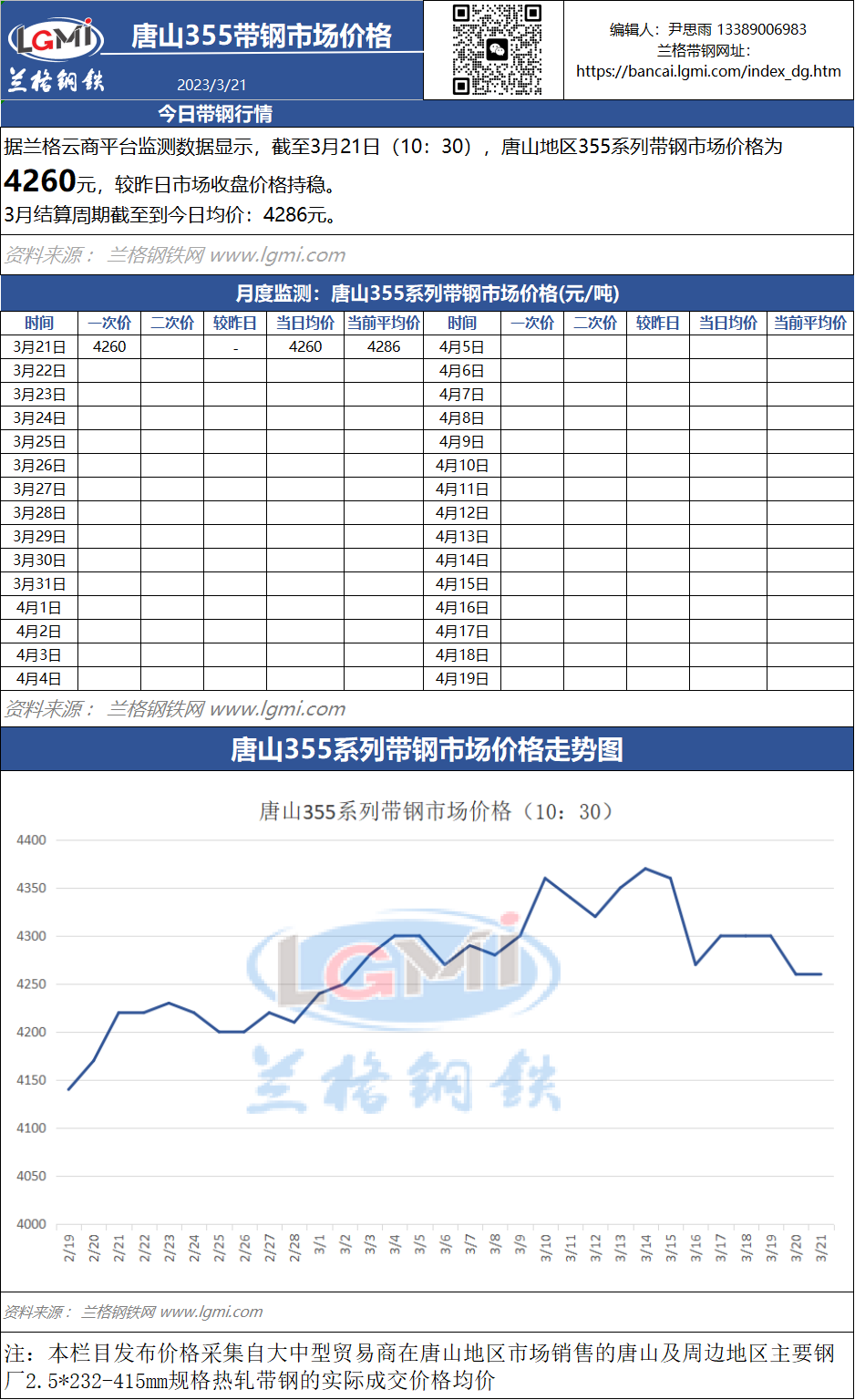 - 3月21日(10:30)唐山355系带钢市场价格2023/3/21
