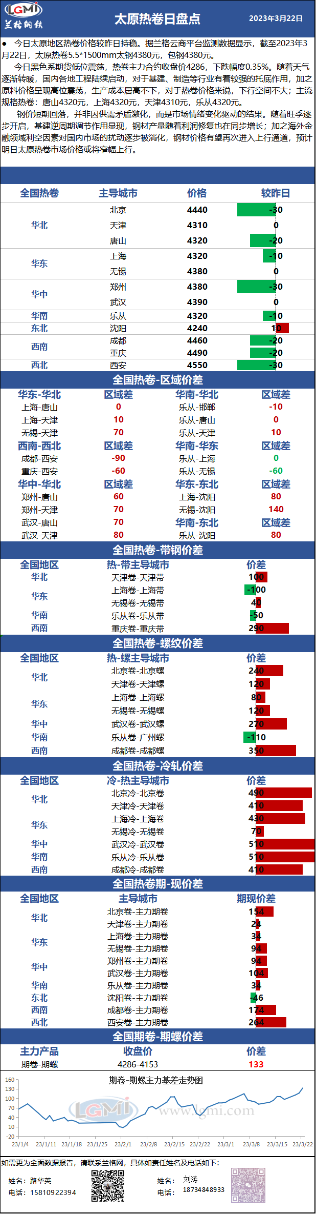 - 太原热卷价格持稳 明日或将小幅回调2023/3/15