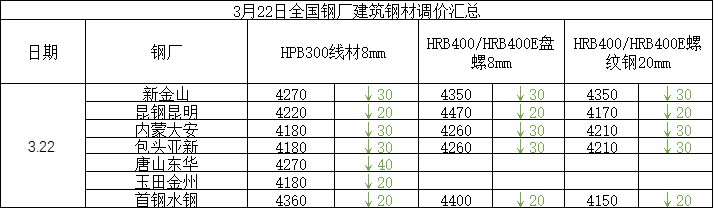 - 3月22日贵阳长乐钢铁建筑钢材出厂价格下调10元2023/3/22