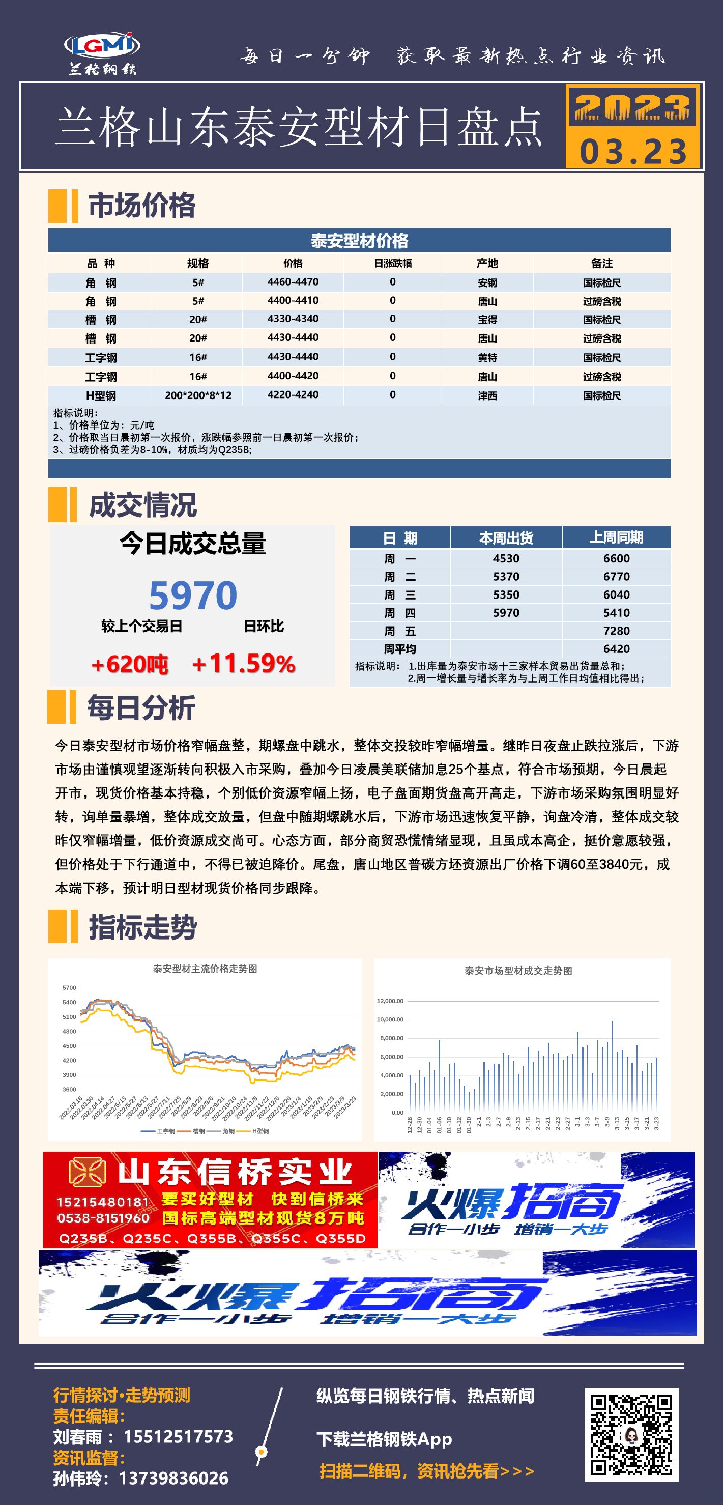 泰安型材日盘点:市场价格持稳盘整 成交窄幅增量
