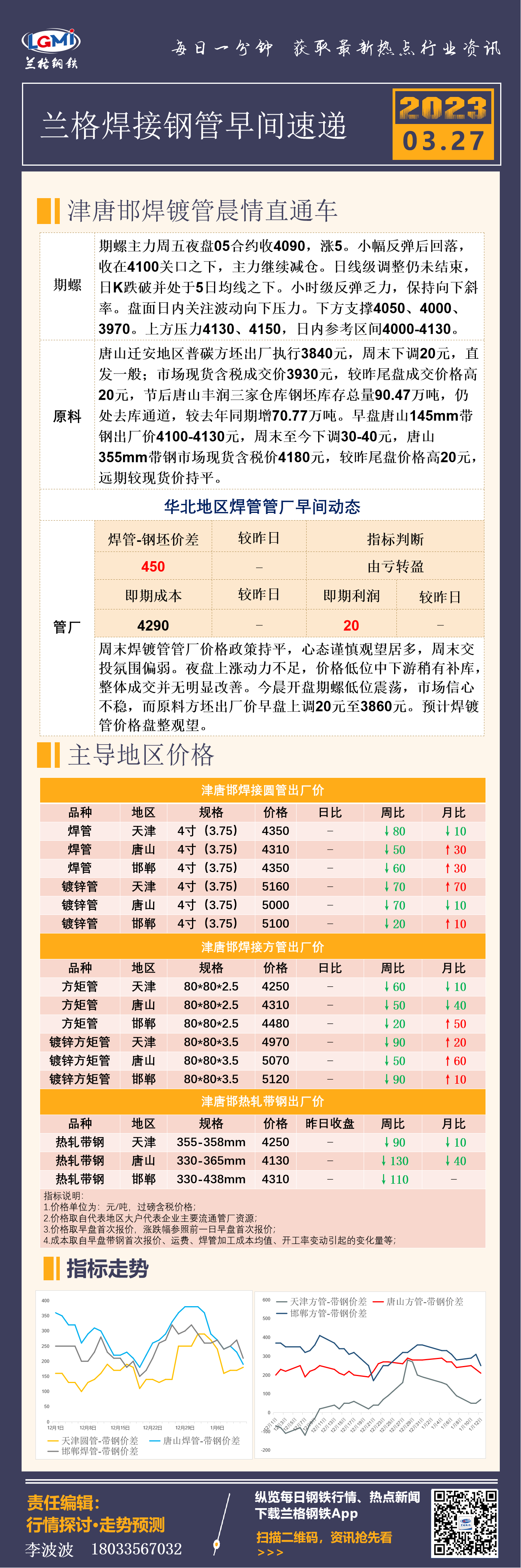 3月27日(9:20)兰格津唐邯焊接钢管早间速递