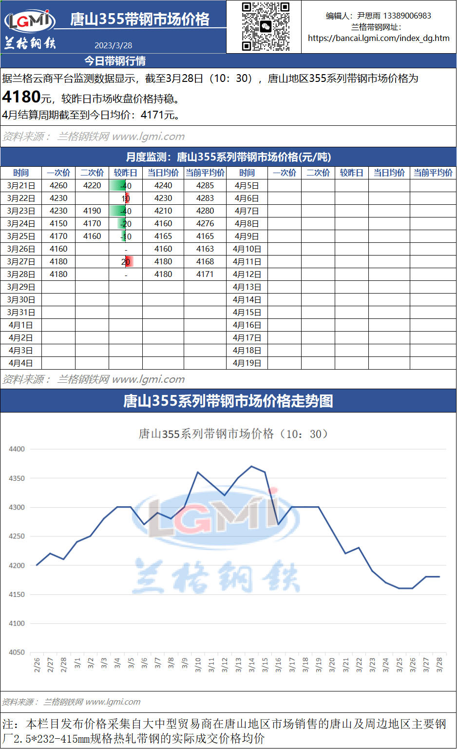 - 调价:3月28日唐山带钢宝生136-242系出厂价格再涨10元2023/3/28