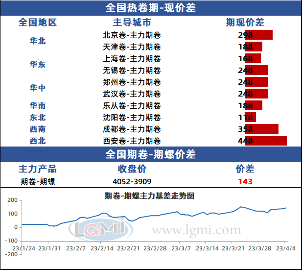 价差方面,现货价格相对抗跌,依然较期货维持升水。卷螺差维持高位运行。