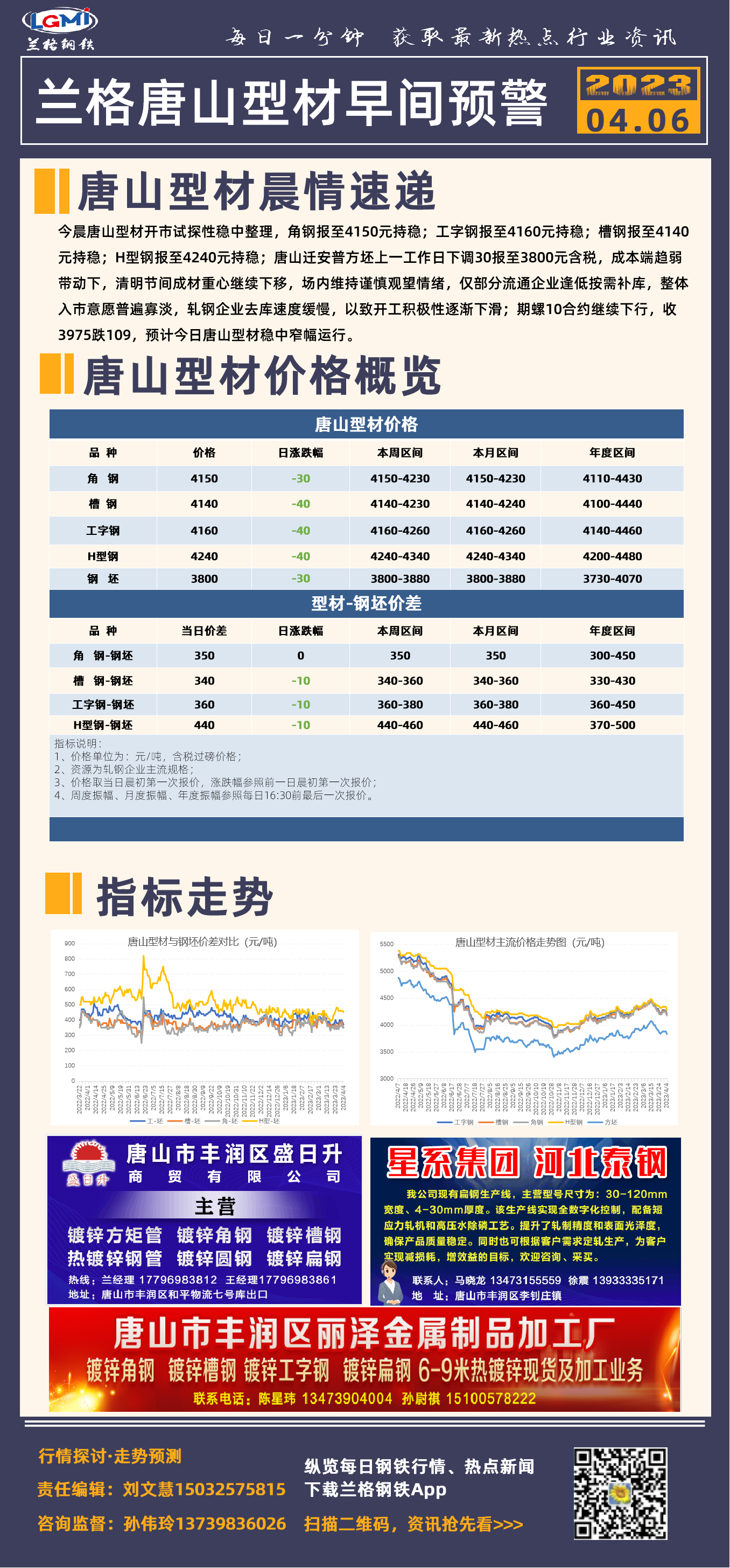 - 4月6日兰格唐山型材早间预警2023/4/6