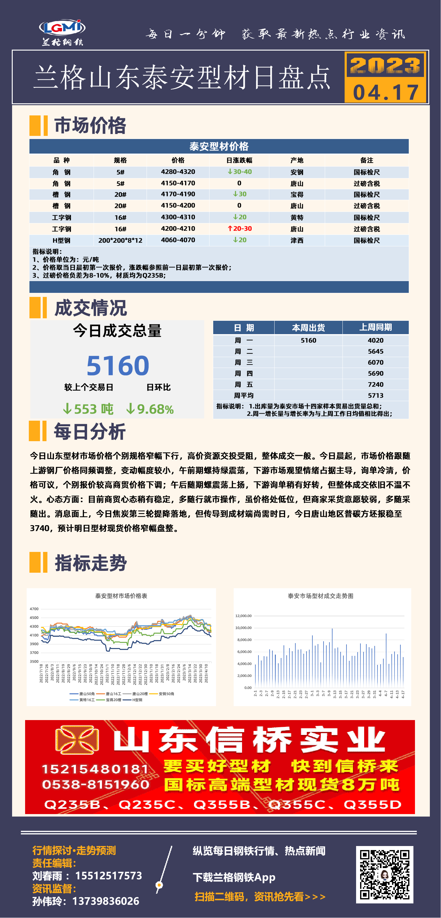 - 兰格视点:4月17日钢铁行业概览2023/4/17