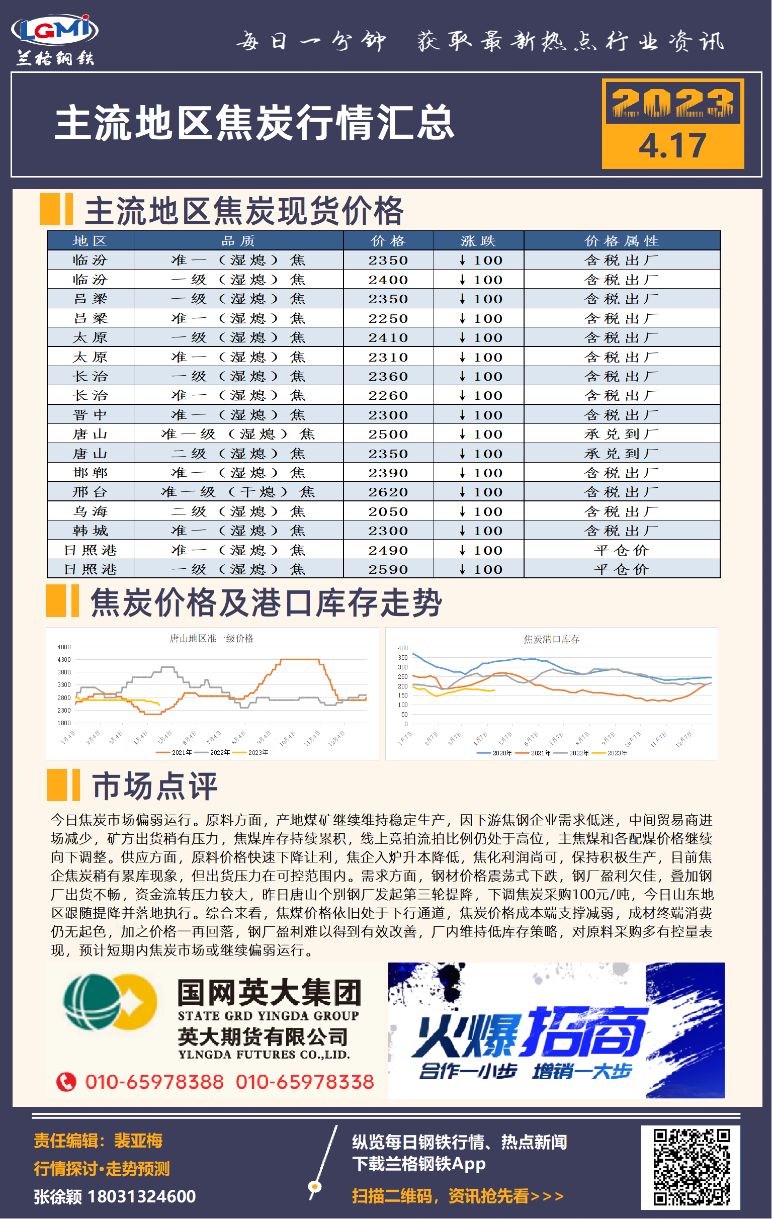 - 4月17日主流地区焦炭行情汇总2023/4/17