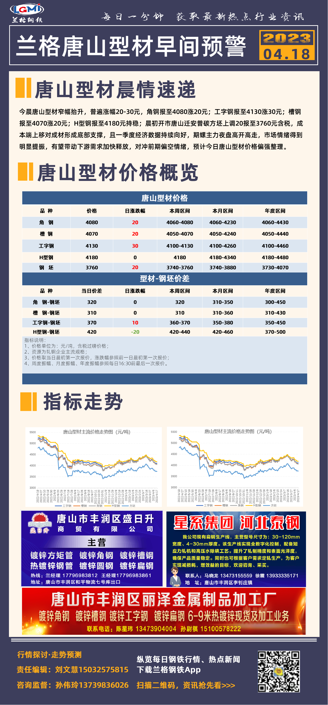 - 4月18日兰格唐山型材早间预警2023/4/18