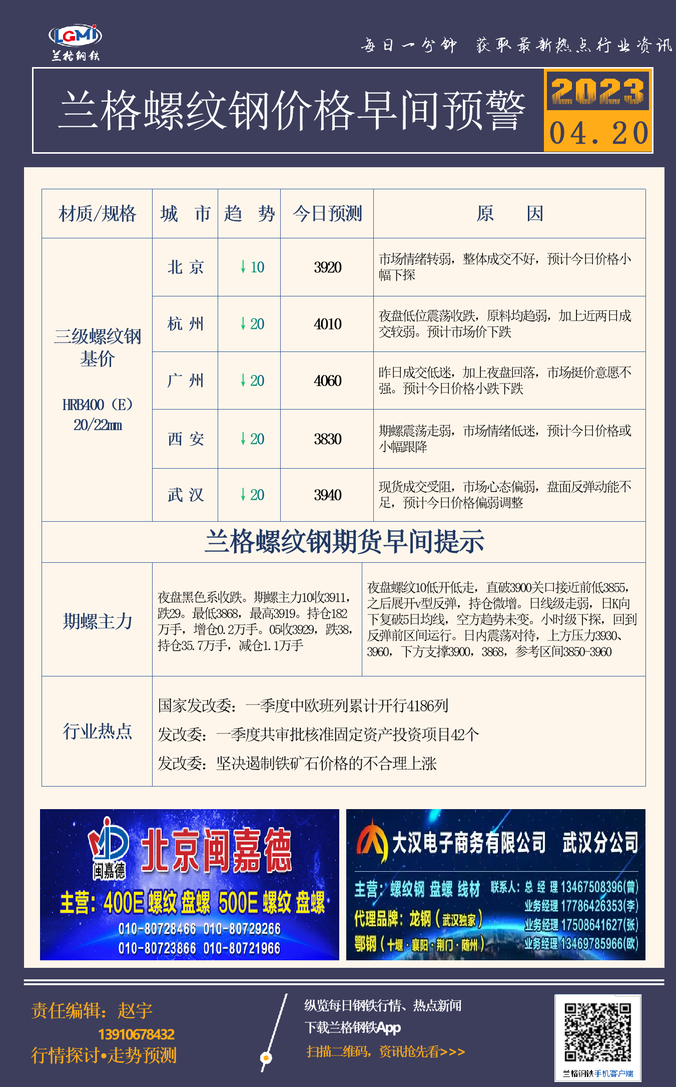 - 4月19日山西晋南钢铁建筑钢材出厂价格2023/4/19