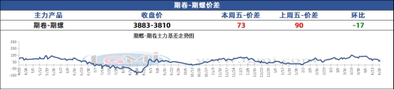 本周卷螺差有所收窄,截止本周五卷螺差为73元。