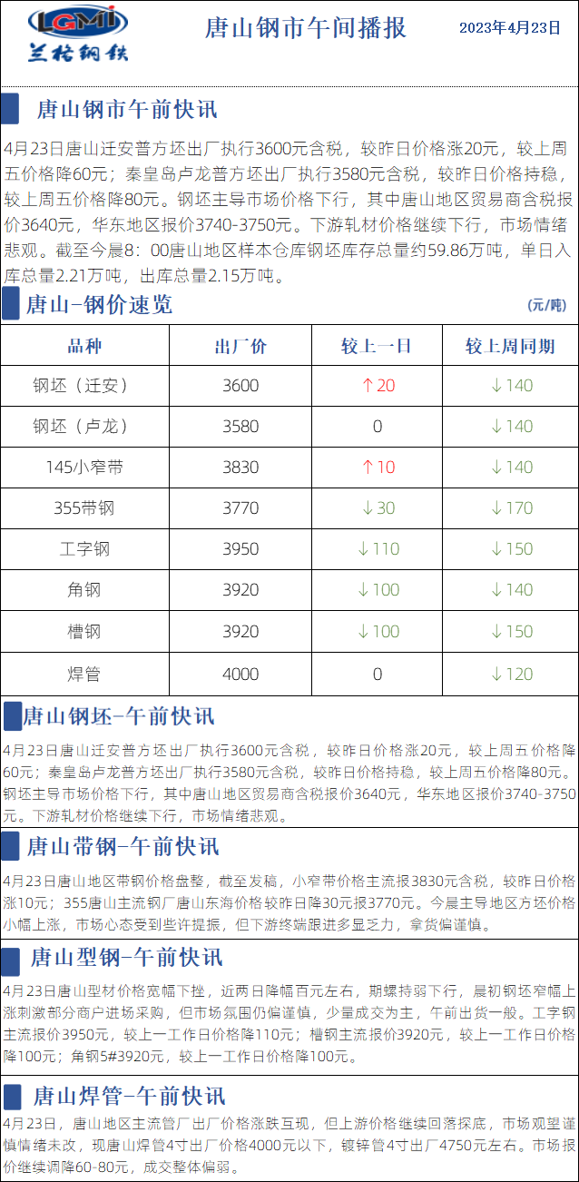 4月23日兰格唐山钢市午间播报