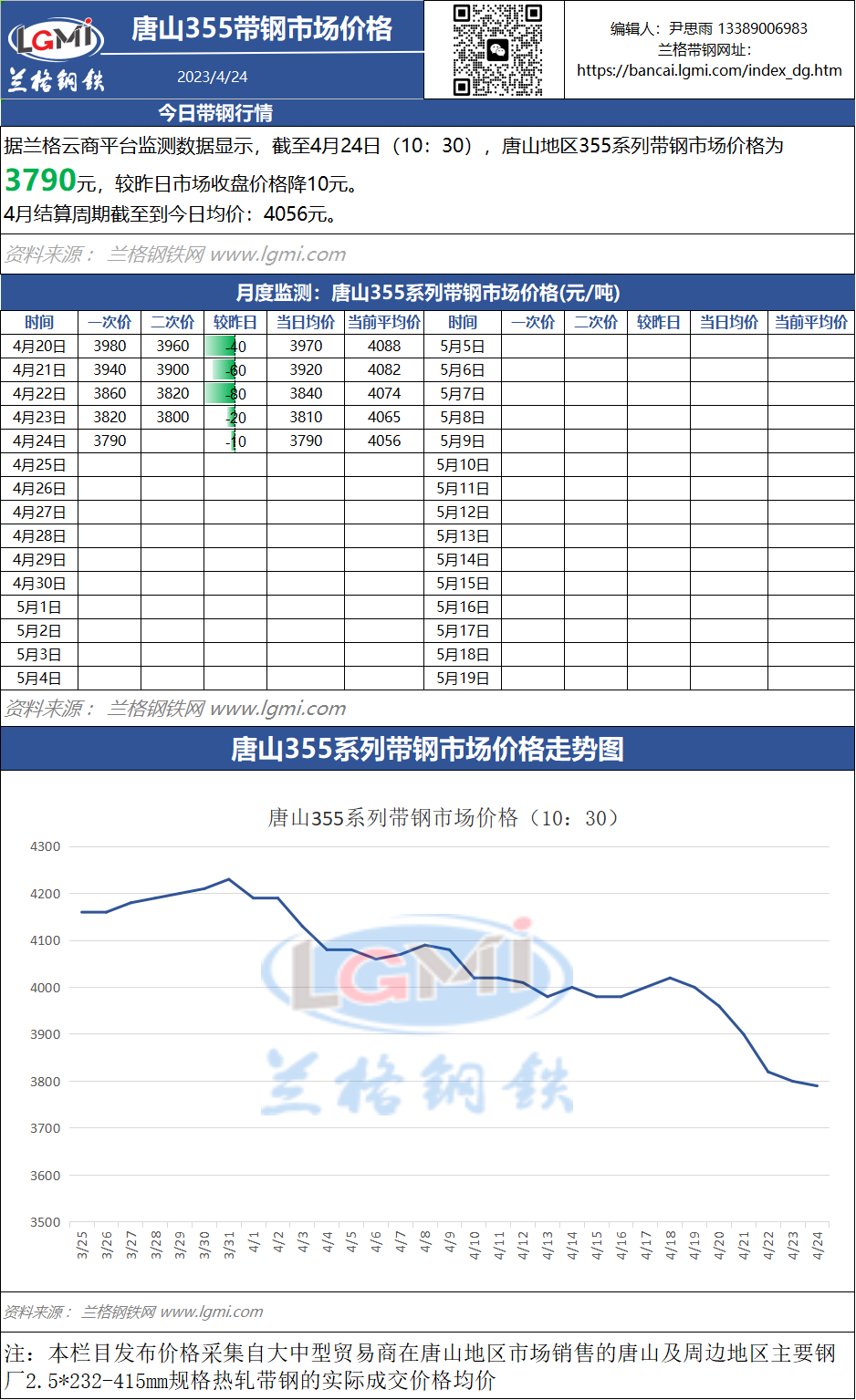 - 调价:4月24日唐山带钢宝生136-242系出厂价格再降10元2023/4/24