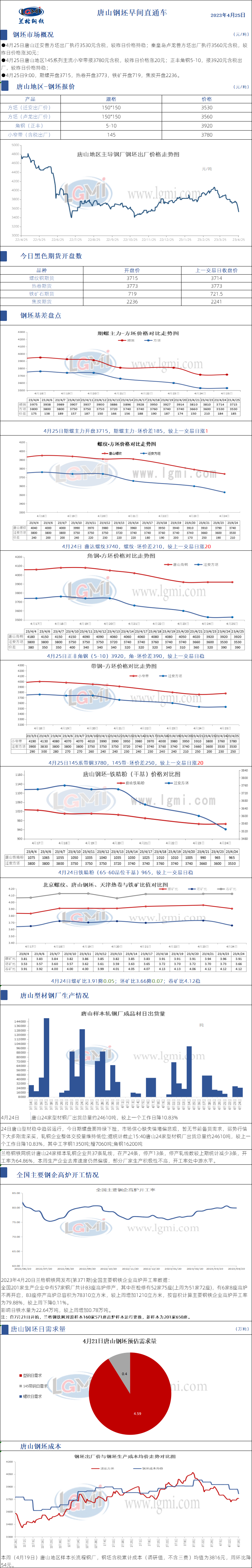 4月25日唐山钢坯早间直通车