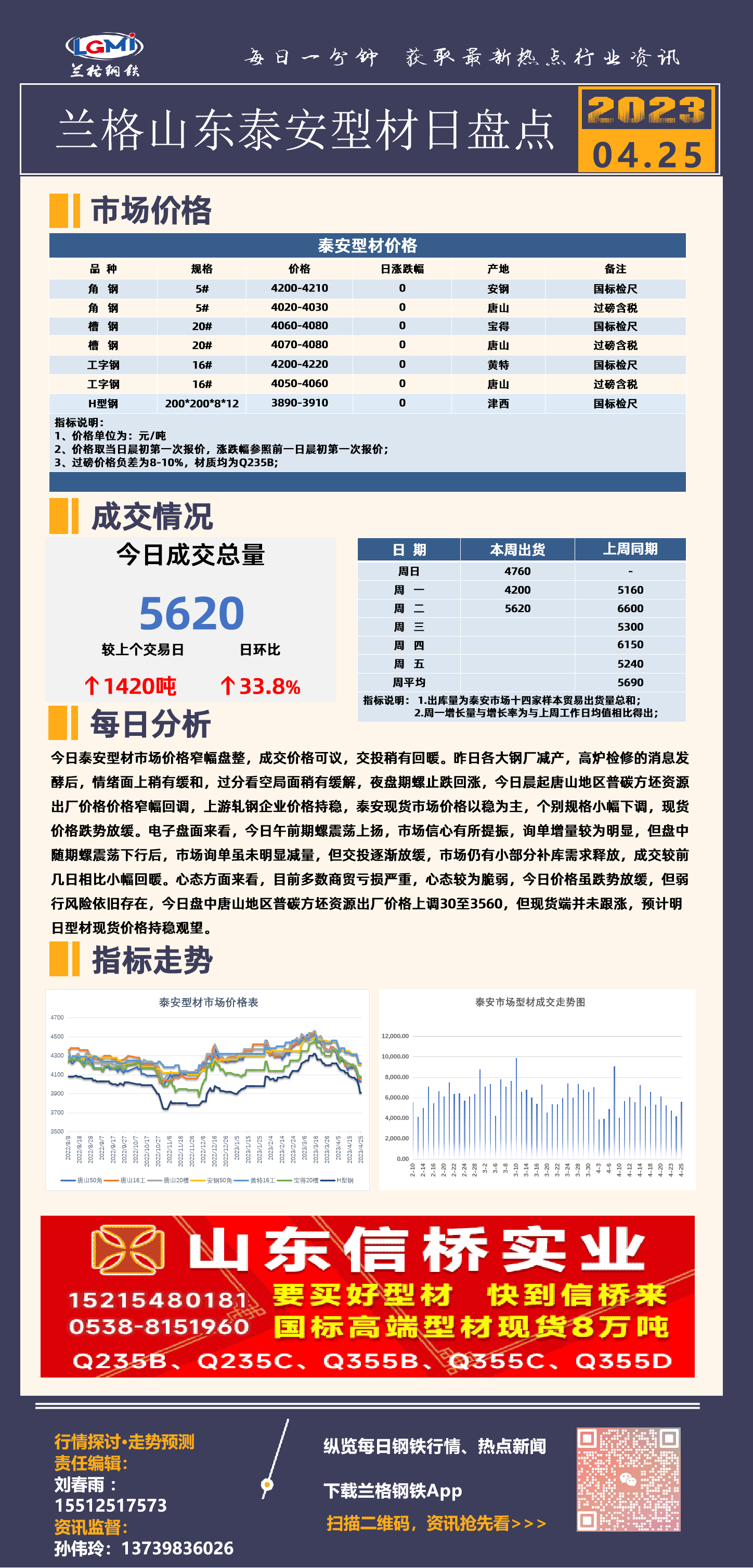 泰安型材日盘点:钢坯涨 成材稳 成交小幅回暖