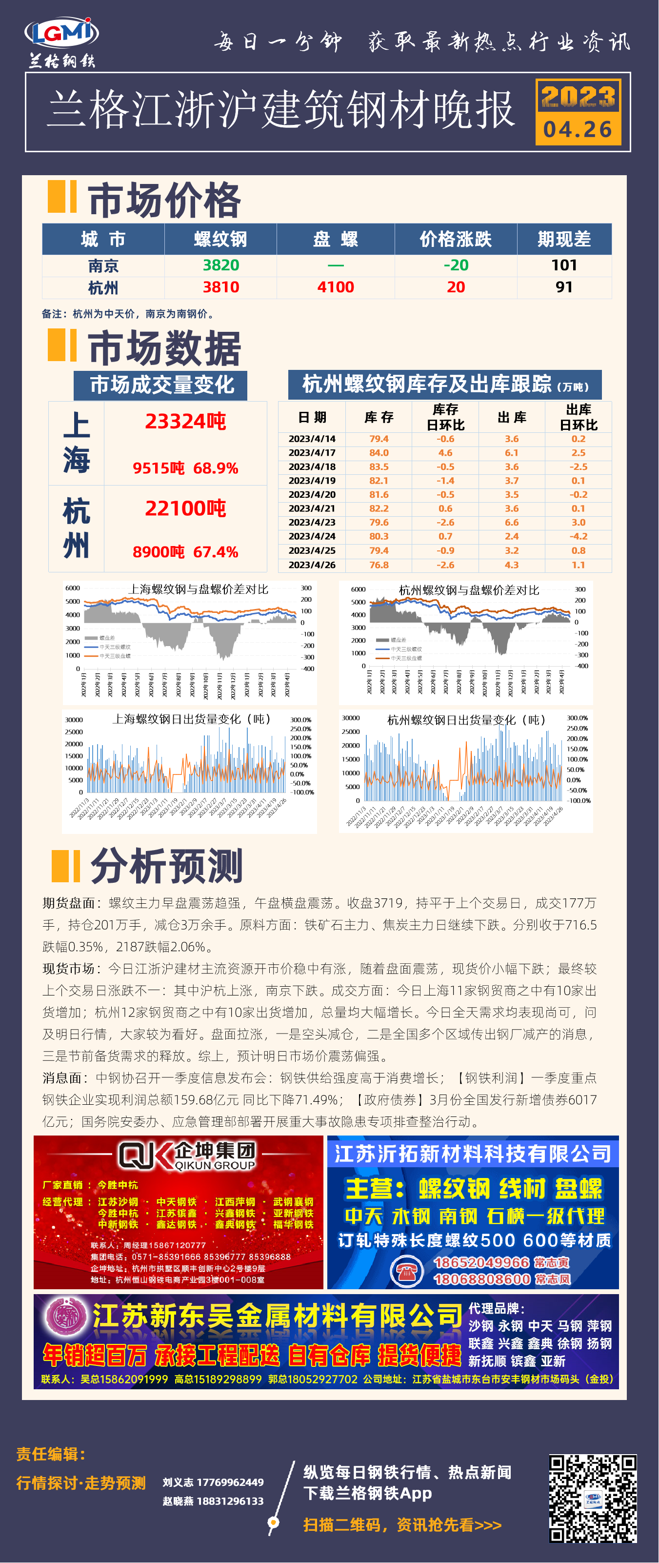 - 兰格视点:4月26日钢铁行业概览2023/4/26