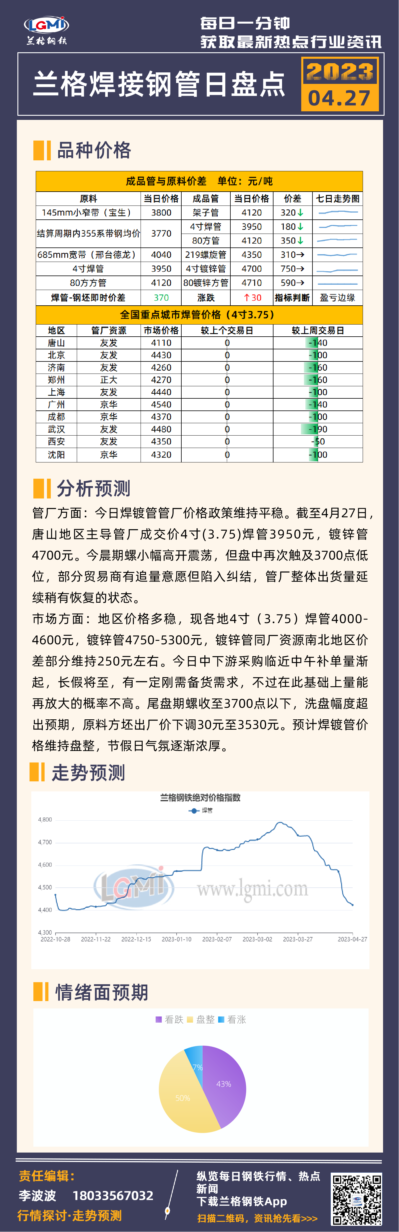发表日期:2023/4/27 17:30:12 兰格钢铁-李波