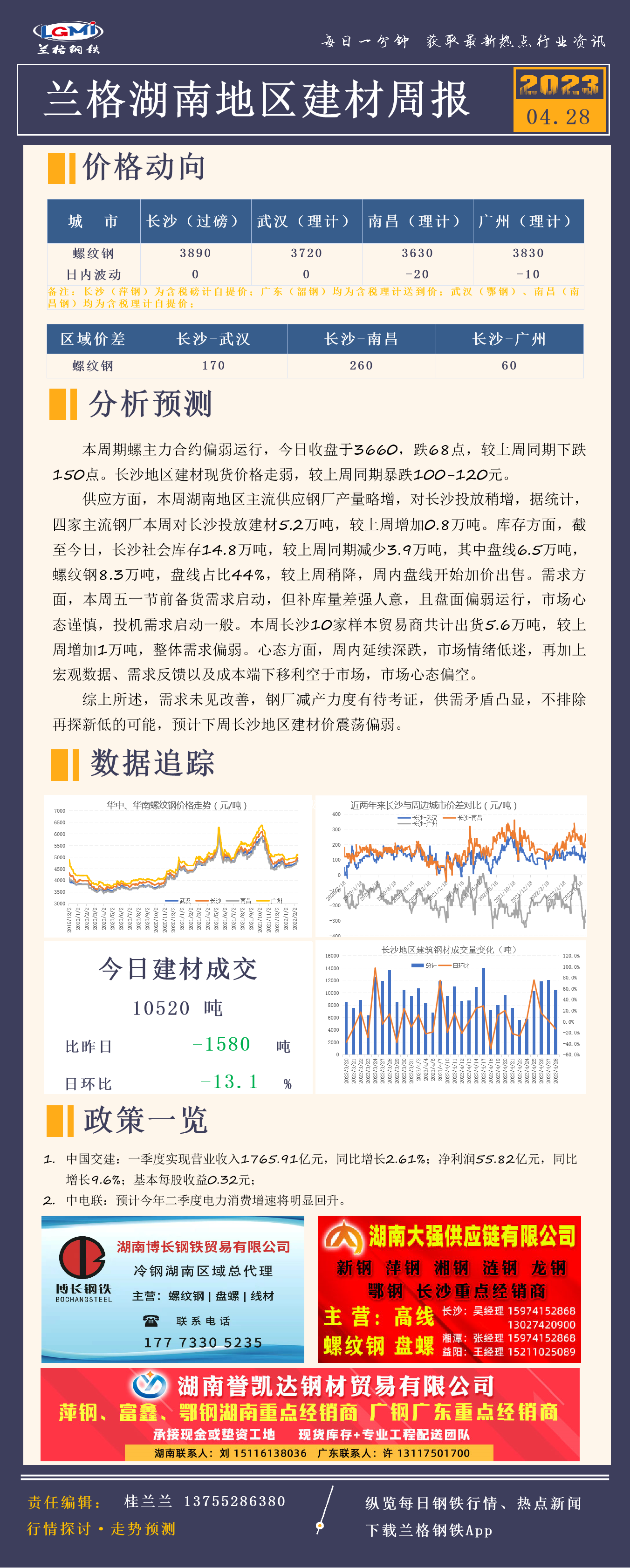 - 长沙建筑钢材库存统计(04.28)2023/4/28