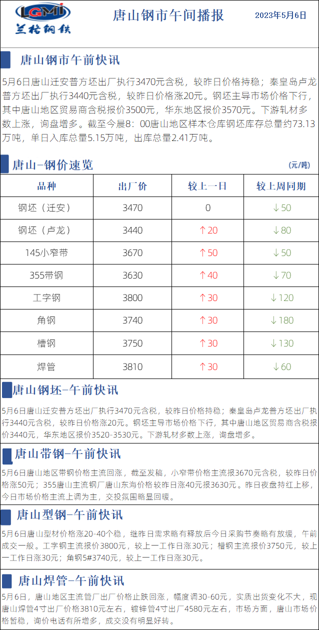 5月6日兰格唐山钢市午间播报