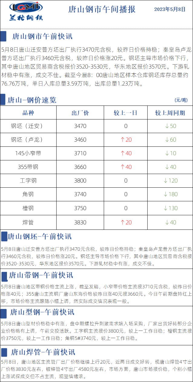 5月8日兰格唐山钢市午间播报