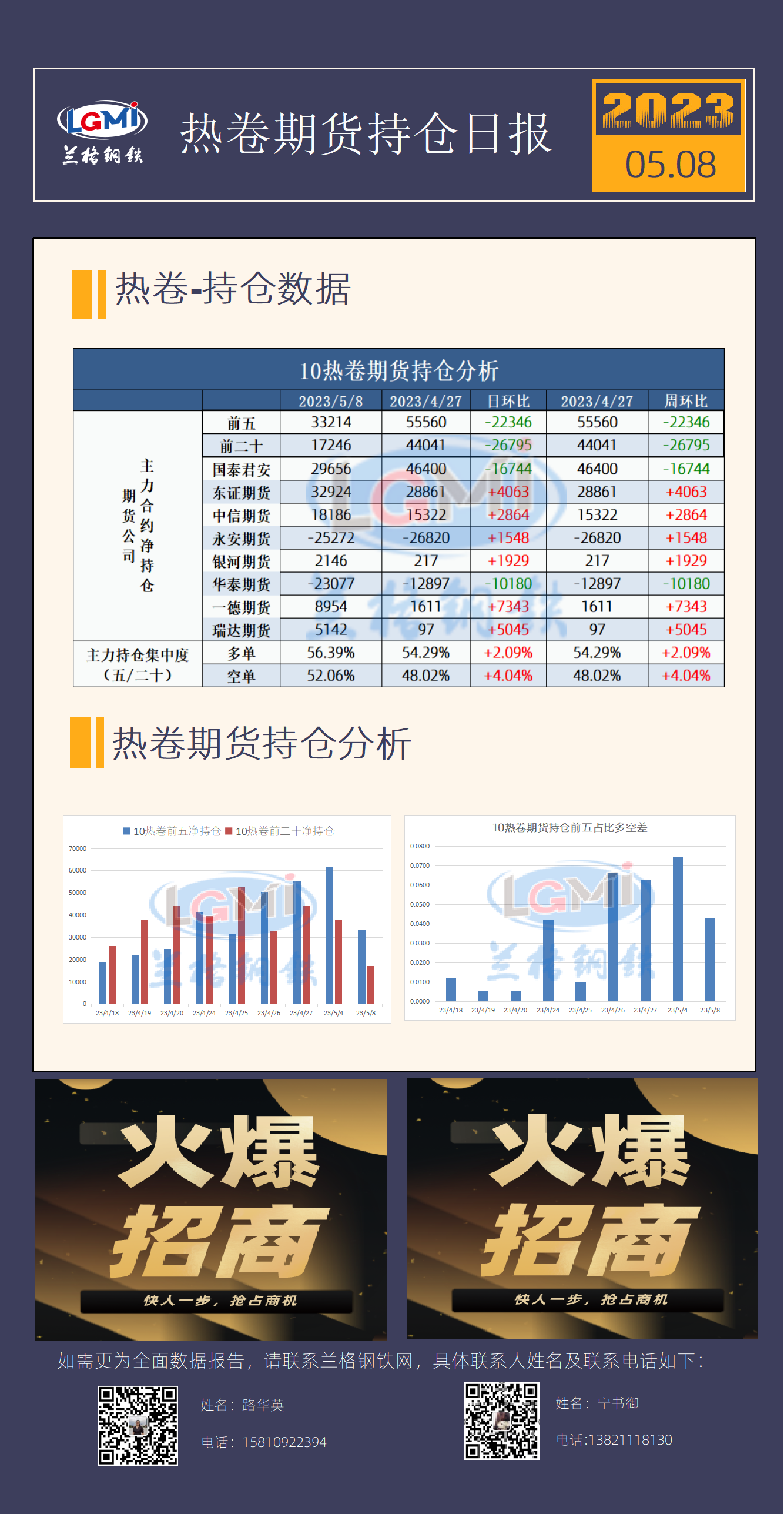 - 5月8日热卷期货持仓日报2023/5/8