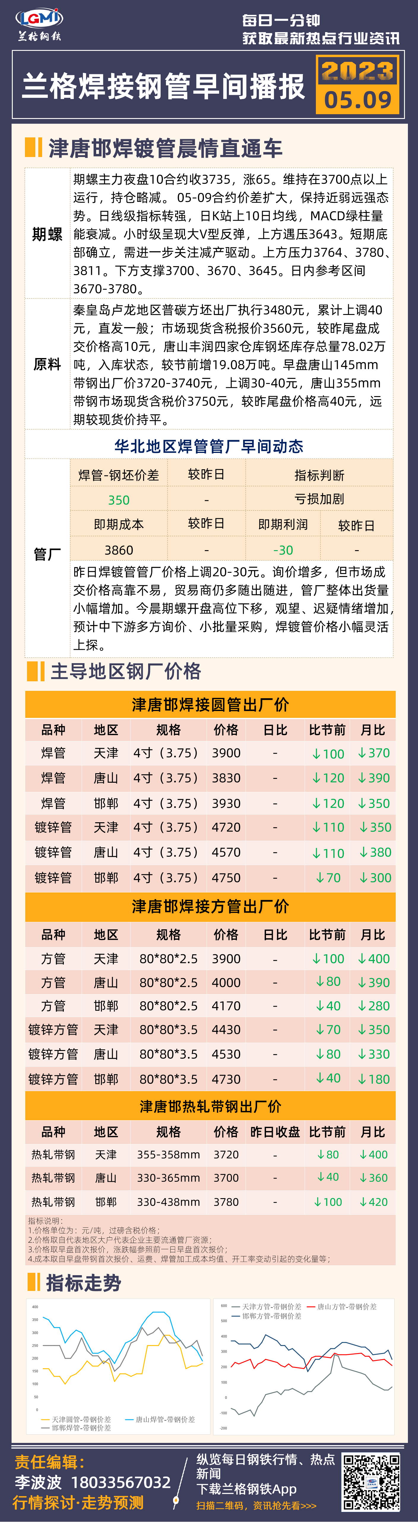 5月9日(9:20)兰格津唐邯焊管、镀锌管早间速递
