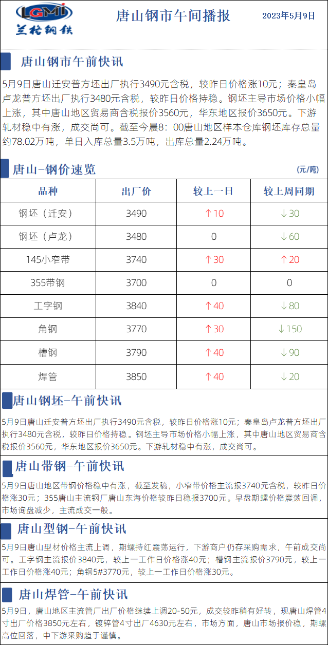 - 5月9日唐山津西钢铁带钢出厂价格稳定2023/5/9