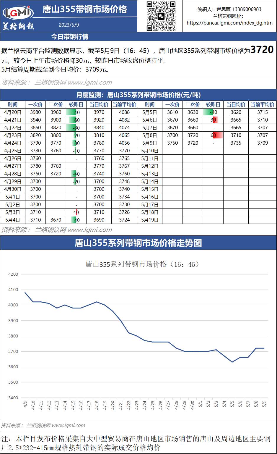 - 5月9日(16:45)唐山355系带钢市场价格2023/5/9