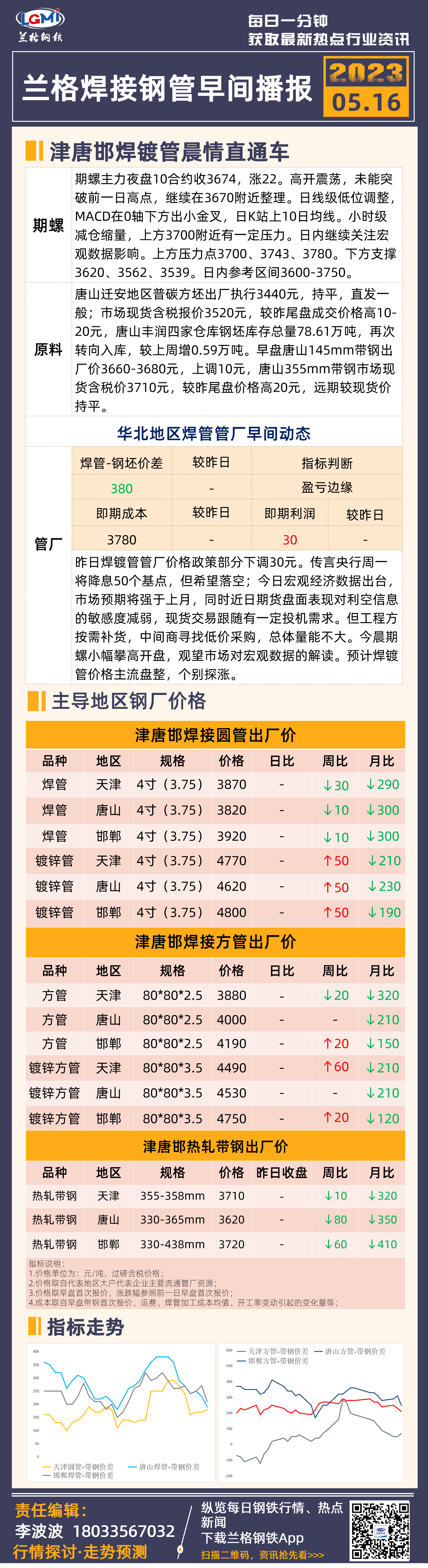 5月16日(9:20)兰格津唐邯焊管、镀锌管早间速递