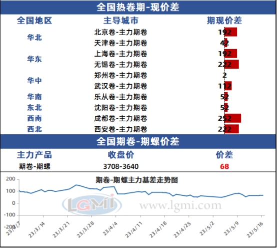 今日开市,热卷期货盘面震荡趋弱运行,今日一系列宏观数据发布,虽然部分数据表现下跌,但好于预期。另外,房地产行业仍表现不足,统计局数据显示中国1-4月全国房地产开发投资同比下降6.2%,商品房销售面积同比下降0.4%。早盘热卷现货市场稳中上涨,但市场观望情绪仍难以消散,午后随着期货盘面下行影响,部分城市热卷价格小幅回调。整体来看,业者入市采购谨慎,加之部分业者昨日采购透支今日需求,也在一定程度上利空热卷市场交投氛围提升不足。另外,近期华东区域特别是上海地区热卷与华北、华南地区价差有所增加。今日上海鞍钢资源报价3900元,天津热卷承钢资源报3750元,乐从万钢资源3760元,上海-天津价差150元,上海-乐从价差140元。