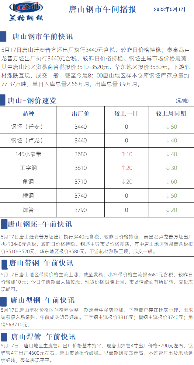 5月17日兰格唐山钢市午间播报