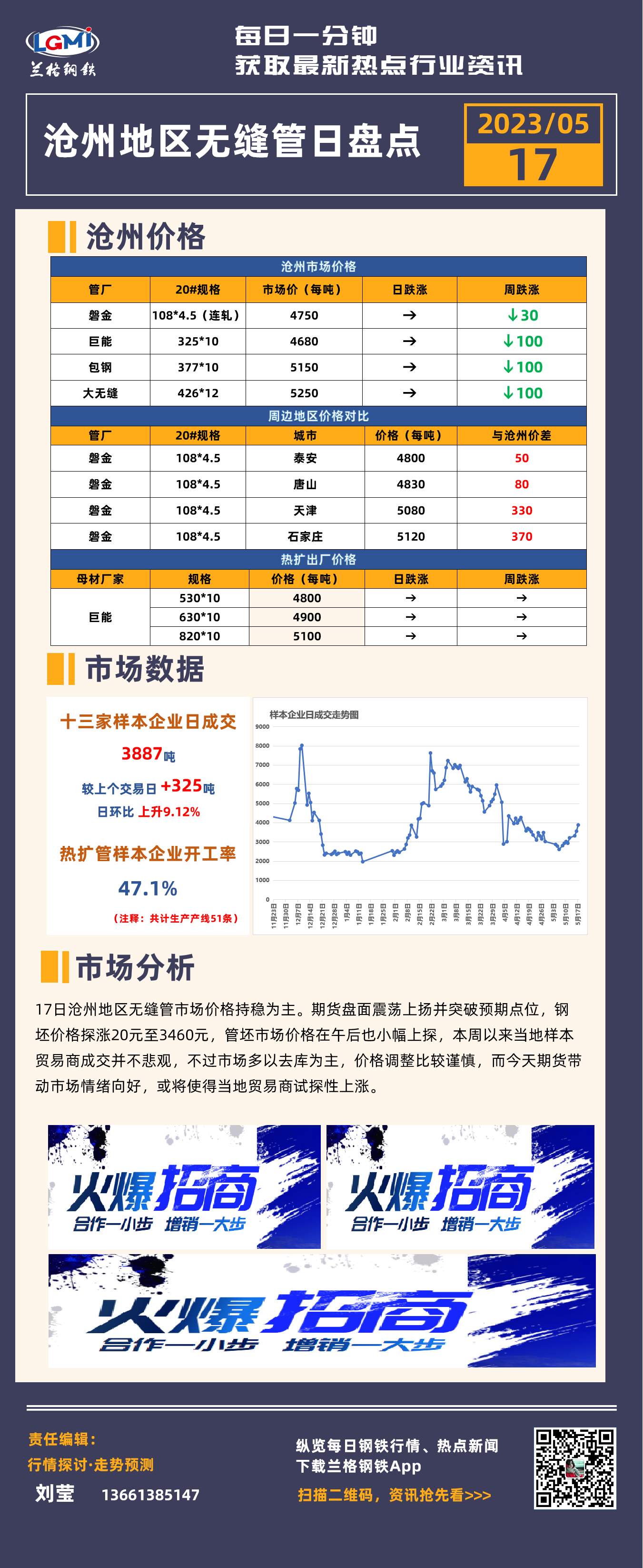 沧州无缝管日盘点:成交明显好转 价格或有窄幅上探