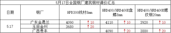 - 5月17日宁夏钢铁建筑钢材出厂价格上调20元2023/5/17